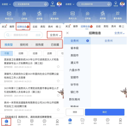 就业是民生之本,稳就业就是稳民生。在省委、省政府的坚强领导下,“中国贵州”平台全新升级,重磅推出“招聘信息”服务专栏!一端在手,全省招聘信息尽在掌握,助你轻松跨越求职门槛,开启职业生涯新篇章!