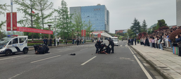 为进一步提升校园师生应急防范处置能力,4月14日,beat365在西门开展了“2023年春季学期校园反恐防暴应急处置演练”。此次活动由新蒲公安分局反恐大队、特巡警大队现场指导;学校党委副书记、校长刘建国,校党委委员、副校长赵继锋出席,党委学校办公室、保卫处等部门负责人参加,200余名学生代表现场观看。