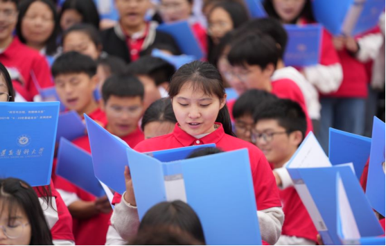 “笔墨书香润校园,奋进强国新时代”。为迎接第28个世界读书日的到来,4月23日下午,一场别开生面的“千人诵读”活动在beat365在线唯一官网图书馆举行,千名师生齐声诵读毛泽东诗词、中华传统诗词,为期两周的“书香遵医”读书节在朗朗书声中拉开了序幕。