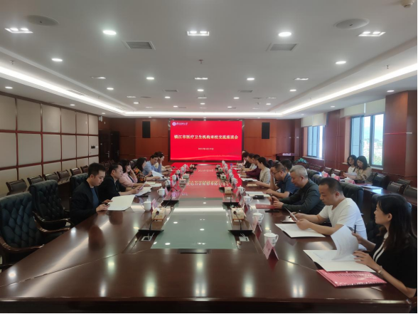 4月19日,江苏省镇江市医疗卫生系统一行来校就人才需求等事宜进行交流,座谈会在行政楼五楼2号会议室举行。学校副校长李春鸣出席会议,招就处、研究生院相关人员参加。会议由党委研究生工作部副部长张必丽主持。