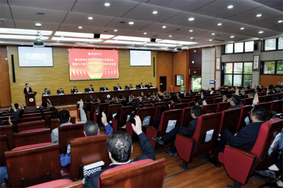 学校党委副书记、校长刘建国作题为《凝心聚力 踔厉奋发 为谱写学校高质量发展新篇章而团结奋斗》的工作报告。报告从“坚持党建引领,加强理论武装”和“深化内涵建设,学校高质量发展再创新绩”两方面总结了2022年工作成绩,从十个方面梳理了学校2023年重点工作。一要以深入学习贯彻落实党的二十大精神为主线,强化党建引领,推动学校各项事业迈向新征程;二要以新增博士学位授权点建设为抓手,加强学科和学位点建设,不断强化学校内涵式发展;三要以“做大省属高校”战略布局为契机,调整办学规模,争取财政资金支持提升办学条件;四要以新一轮本科教学审核评估为重点,深化教育教学改革,持续提升人才培养质量;五要以加强科技创新和成果转化为着力点,在科技自立自强上筑牢根基;六要以完成政府专项贷款建设计划为依托,打造教育教学和科技创新大平台,强化专业教研室及平台能力建设;七要以拓展对外合作与交流为支撑,奋力开创学校发展新局面;八要以深入实施人才强校战略为驱动,全面强化人才队伍建设;九要以新一轮市校合作为基础,推动珠海校区和第五附属(珠海)医院持续向好发展;十要以国家办学政策为指导,稳步推进医学与科技学院转设工作。
