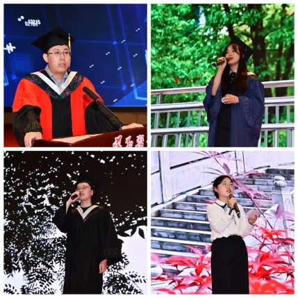 随后,教师代表万南微,毕业研究生代表刘颖、本科毕业生代表卢彦吉、本科在校生代表袁乙丹发言,表达了对母校的浓浓不舍和对未来的美好憧憬,遵医的学习生活时光,将成为镌刻在人生回忆中的珍贵宝藏。