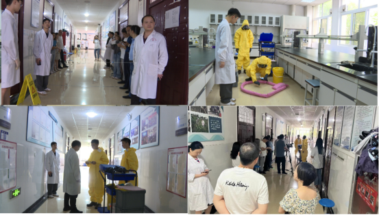 为贯彻落实《贵州省教育厅办公室关于开展全省教育系统2023年“安全生产月”活动的通知》的文件精神,按照学校2023年“实验室安全生产月”活动方案安排,6月28日,学校分别在beat365在线唯一官网国家级药学实验教学示范中心、科研楼四楼贵州省高等学校传染病与生物安全重点实验室开展实验室化学突发事件及生物突发事件应急演练活动。学校党委委员、副校长龚其海,设备处,药学院、基础医学院、科技处、保卫处、校医院参加,各院系、各实验室实验人员和师生现场观摩。