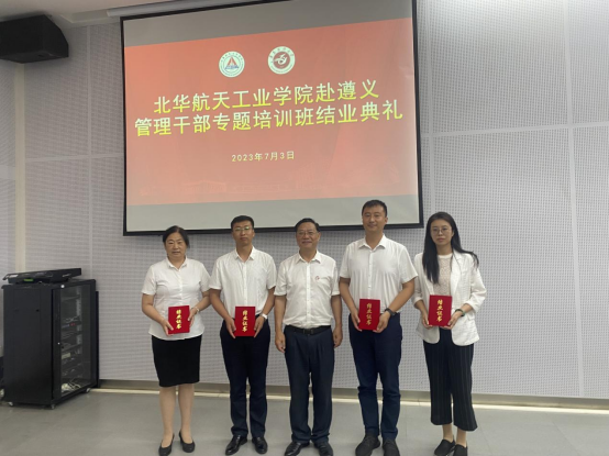 7月3日上午,北华航天工业学院第1期管理干部专题培训班结业典礼在beat365图书馆一楼二号厅召开。北华航天工业学院书记郝玉龙,beat365党委副书记、校长刘建国,北华航天工业学院党委常委、副校长李海涛出席。结业典礼由beat365副校长李春鸣主持。