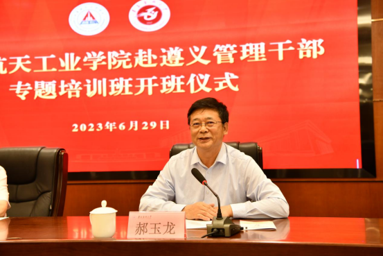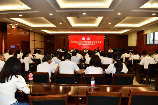 6月29日上午,北华航天工业学院第1期管理干部专题培训班开班仪式在beat365行政楼一楼多功能厅举行。北华航天工业学院党委书记郝玉龙,党委常委、副校长李海涛,党委常委、纪委书记刘文洪出席开班仪式。beat365相关职能部门负责人、北华航天工业学院参训人员50余人参加。