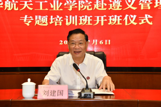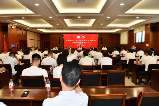 7月6日上午,北华航天工业学院第2期管理干部专题培训班开班仪式在beat365行政楼一楼多功能厅举行。北华航天工业学院党委副书记、校长韩文仲,beat365党委副书记、校长刘建国,北华航天工业学院党委常委、副校长陈刚,北华航天工业学院党委常委、副校长王晓光出席开班仪式。beat365相关职能部门负责人、北华航天工业学院参训人员50余人参加。