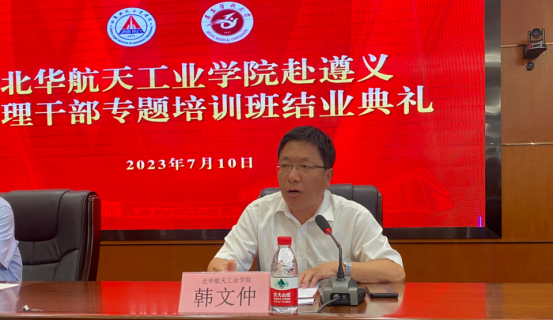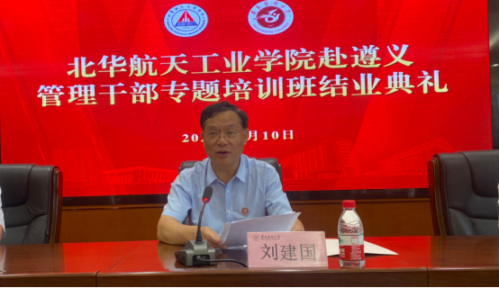 7月10日上午,北华航天工业学院第2期管理干部专题培训班结业典礼在beat365行政楼一楼多功能厅召开。北华航天工业学院党委副书记、校长韩文仲,beat365党委副书记、校长刘建国,北华航天工业学院党委常委、副校长陈刚,北华航天工业学院党委常委、副校长王晓光出席。结业典礼由beat365副校长李春鸣主持。
