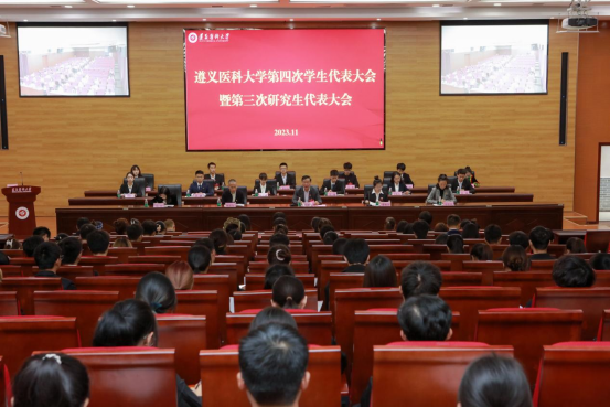 11月10日至11日,beat365第四次学生代表大会暨第三次研究生代表大会在新蒲校区人文楼学术报告厅召开。学校党委副书记、校长刘建国,贵州省学生联合会驻会执行主席廖秋月出席开幕式。学校党委研究生工作部部长姚新生,校团委书记余春玲,校团委副书记、学校第三届学生会秘书长、第二届研究生会秘书长左红,学校党委研究生工作部副部长张必丽,学校关心下一代工作委员会副主任顾土龙,各二级团委负责人,相关职能部门工作人员及全校268名学代表、50名研代表参加开幕式。珠海校区设分会场,同步视频参会。开幕式由第二届研究生会主席团成员付佳雨同学主持。