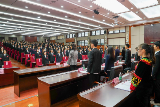 闭幕式上,审议通过了关于学生会工作报告、研究生会工作报告、学生会章程(修正案)、研究生会章程(修正案)的决议。新一届学生会主席团成员柘兰心同学和新一届研究生会主席团成员郭子怡同学分别作表态发言。