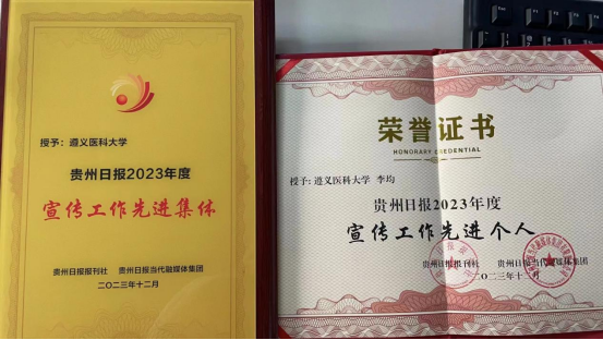 近日,贵州日报报刊社、贵州日报当代融媒体集团授予beat365在线唯一官网“贵州日报2023年度宣传工作先进集体”荣誉,授予beat365在线唯一官网党委委员、宣传部长李均“贵州日报2023年度宣传工作先进个人”荣誉。