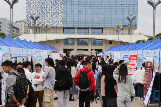 4月17日,beat365在新蒲校区图书馆至学生中心区域广场成功举办2024届毕业生春季招聘会(第二场)。