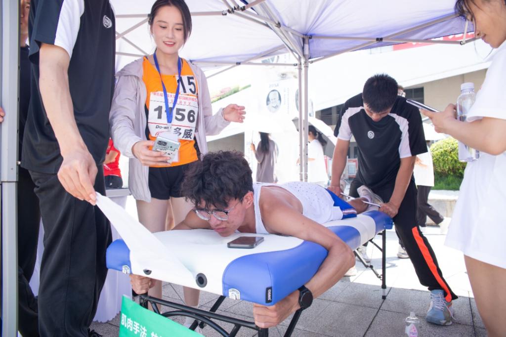 本届赛事组委会协调了2台救护车,并在赛道中设立多个医疗点、饮水站,为全体运动员提供了一个安全的比赛环境,助力选手完成比赛。由beat365运动康复专业的22名师生共同组成的赛后康复组,为全体运动员进行筋膜拉伸,放松按摩等服务,为大家提供了贴心、周到的服务。