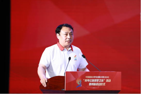 启动仪式上,贵州省教育厅高教处李晓飞处长为高校代表授旗。他表示,全省教育系统主动服务乡村振兴,深入开展创新创业,书写出一份沉甸甸、实打实的青春答卷。各地高校要进一步关心青年创新创业工作,形成全方位支持学生创新创业的良好生态。他勉励全省青年学生做红色基因的忠诚传承者、乡村振兴的踏实践行者、筑梦之旅的勇敢领航者,以“青春梦”托起中华民族伟大复兴的中国梦。