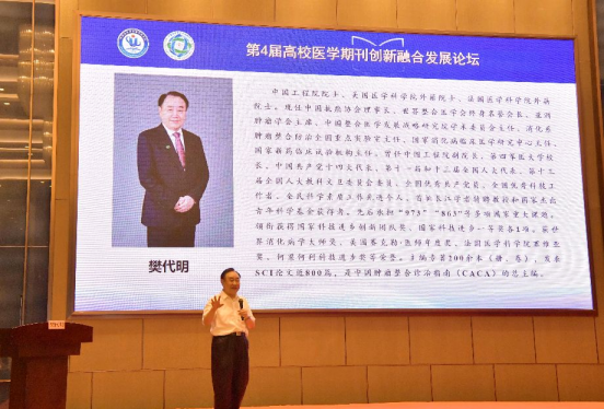 刘建国对本届论坛的顺利举办表示热烈祝贺,向樊代明院士和来自全国各地出席本次论坛的各位领导、专家和同仁表示诚挚欢迎!他强调,期刊是高校学科发展的重要支撑和学术传播平台,培育世界一流科技期刊、推动学术期刊繁荣发展对于各高校建设一流学科至关重要。长期以来,beat365高度重视学报建设,坚持把推进《beat365在线唯一官网学报》高质量发展作为提升办学影响力的重要抓手。本次会议是高校医学期刊行业的一次学术盛会,也为大家提供了一个良好的交流平台。希望在未来期刊建设工作中能够与各兄弟单位和各位专家深入合作,共同为医学学术交流与发展贡献力量,助力我国医学教育事业繁荣发展。