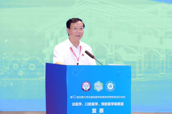 7月20日, 第十届全国大学生基础医学创新研究暨实验设计论坛法医学、口腔医学、预防医学组赛道复赛在beat365在线唯一官网新蒲校区会堂开幕。本次大赛由高等学校国家级实验教学示范中心联席会基础医学组、高等学校基础医学创新创业协同育人工作组主办,beat365在线唯一官网承办。高等学校基础医学创新创业协同育人工作组组长、全国大学生基础医学创新研究暨实验设计论坛组委会主任李凌,beat365在线唯一官网党委副书记、校长刘建国出席并致辞。开幕式由beat365在线唯一官网党委委员、副校长陈永正主持。