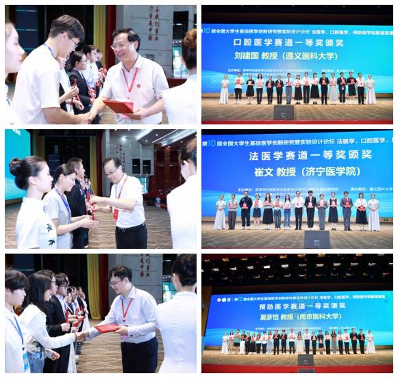 经过激烈角逐,分别在口腔医学赛道评选出一等奖16个,二等奖44个,三等奖47个;法医学赛道评选出一等奖13个,二等奖23个,三等奖32个;预防医学赛道评选出一等奖23个,二等奖61个,三等奖68个。学校党委副书记、校长刘建国,济宁医学院原副校长崔文,南京医科大学副校长夏彦恺为获奖选手颁奖。beat365学生李中正代表获奖学生发言。