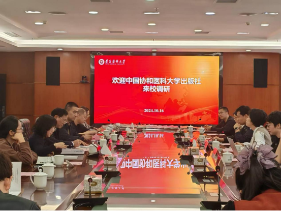 10月16日下午,中国协和医科大学出版社执行总编辑张晓雪、医学教育事业部主任刘婷、发行部副主任张飞、发行部业务经理胡刚一行来beat365调研并向学校捐赠图书。beat365党委书记、校长刘建国出席,学校教务处、图书馆、基础医学院、第一临床学院、护理学院、检验医学院等部门、学院负责人及教师代表参加。会议由教务处副处长张锋主持。