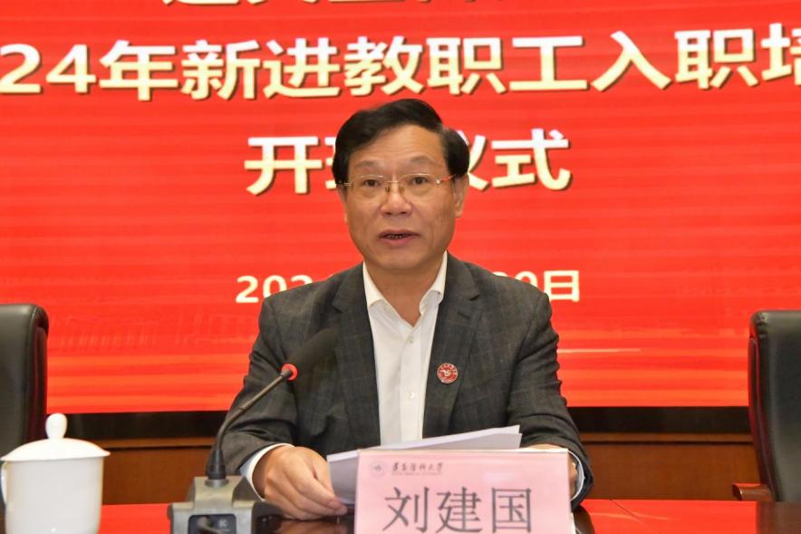 刘建国代表学校对新进教职工表示热烈欢迎,并提出寄语和希望,一是要迅速进入状态,完成身份的转变,坚持以德立身、以德立学、以德施教,带头弘扬教育家精神和中华民族传统美德;二是要潜心教书育人,练好基本功,保持学习的热情和主动性,夯实专业知识,拓宽知识面;三是要在业务能力上精益求精,做好职业规划,虚心学习,早日锻炼出与岗位匹配的工作能力和素养,制定清晰的职业规划,明确自己在教学、科研、管理等方面的追求。