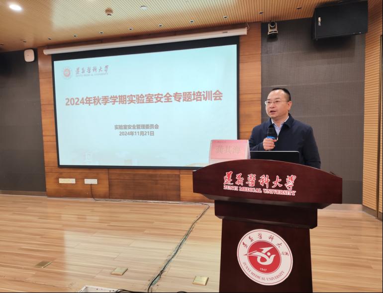 为深入贯彻落实全省校园安全稳定工作会议精神和学校关于安全稳定工作的决策部署,确保实验室安全有序运行,11月21日,学校在新蒲校区图书馆1号报告厅组织开展2024年秋季学期实验室安全专题培训。活动由设备处主办,保卫处及公共卫生学院协办。学校党委委员、副校长龚其海讲话,学院实验室安全工作分管领导,实验室师生代表等共计150余人参加,设备处副处长于欢主持会议。