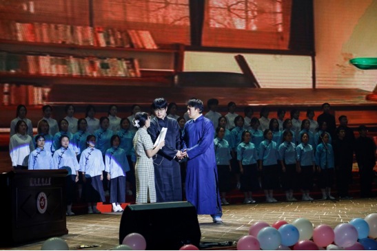 晚会由“丹心·红色精神永传承”“雅韵·古艺流芳韵悠长”“青春·歌舞飞扬启新航”三个篇章构成。在“丹心·红色精神永传承”篇,情景朗诵《致先辈》、歌剧《黄河颂》、话剧《黎明》,带领师生沉浸式回顾了一批批热血青年为拯救民族危亡挺身而出,用青春之火点燃了亿万中华儿女爱国热情的故事,让青年学子看到了中国青年在拯救民族危亡中的责任与担当。“雅韵·古艺流芳韵悠长”篇,乐器合奏《琴瑟和鸣·古今乐韵交响》、舞蹈《唐印》、诗书琴韵表演《春江花月夜》,一场场绚烂多彩的视听盛宴,让青年学子在感传统文化之美、品传统文化之韵时,深刻体悟到中华文脉绵延不绝、生生不息的磅礴动力与生命节律。“青春·歌舞飞扬启新航”篇,舞蹈串烧《舞动青春》瞬间点燃了现场气氛,展现了青年学子朝气蓬勃、奋发进取、勇敢追梦的自信与活力;歌曲《唱响青春未来》《如果可以》,演绎了青春的希望与梦想;诙谐小品《大一新生生存指南》涵盖了新生在大学初期可能遇到的安全、学业等方面问题,助力新生摆脱迷茫,明确成长方向。