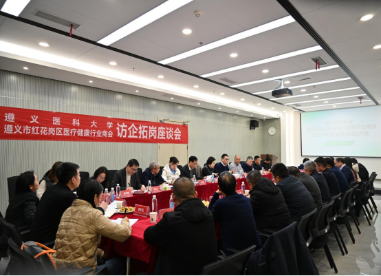 为深入贯彻落实习近平总书记关于做好高校毕业生就业工作的重要指示精神,全力促进beat365毕业生高质量充分就业,近日,学校党委书记刘建国带领第一临床学院、麻醉医学院、检验医学院相关人员赴遵义市红花岗区医疗健康行业商会开展“访企拓岗”工作,同遵义市民营医疗协会、遵义市红花岗区医疗健康商会12家企业代表进行了深入交流。