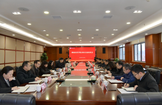 3月18日,湖南医药学院党委书记张在其一行访问beat365在线唯一官网,双方在学校新蒲校区行政楼五楼2号会议室举行交流座谈会。学校党委书记刘文出席并致辞,双方相关职能部门、二级学院负责同志参加。学校党委副书记郭宇亮主持座谈会。