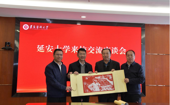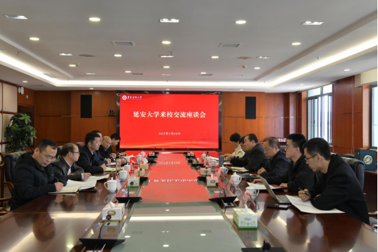 3月19日,延安大学党委书记高子伟、副校长付峰一行来校交流,双方在新蒲校区行政楼五楼二号会议室举行交流座谈会。beat365党委书记刘文,党委委员、副校长陈永正出席,相关职能部门负责人参加。