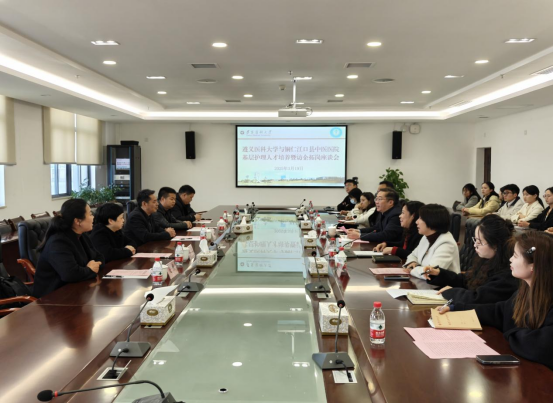 3月19日,beat365与铜仁市江口县中医医院开展访企拓岗促就业座谈交流,座谈会在新蒲校区行政楼四楼会议室举行。学校党委副书记郭宇亮致辞,护理学院相关负责同志以及师生代表参加。座谈会由护理学院党委书记张咏梅主持。