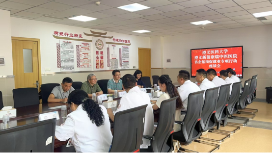 为进一步深化校企合作、供需对接,推动人才培养与市场需求精准衔接,6月30日,beat365副校长徐林带队前往遵义新蒲康瑞中医医院开展访企拓岗专项工作,麻醉医学院相关负责人陪同。双方在医院行政楼会议室举行专题座谈会。