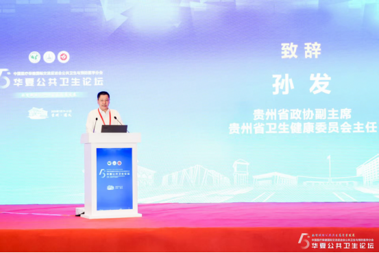 贵州省政协副主席、省卫生健康委员会主任孙发在致辞中表示,本次华夏公共卫生论坛以数智赋能公共卫生高质量发展”为主题,与贵州发展定位和未来规划高度契合,为贵州提供了学习前沿理念、借鉴先进经验的宝贵机遇。他殷切希望与会的各位专家学者在本次论坛上畅所欲言、积极建言献策,为贵州公共卫生事业发展把脉问诊、出谋划策。