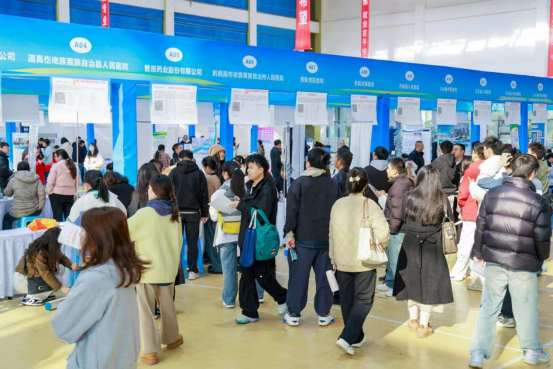 本次招聘会得到遵义市人力资源和社会保障局的大力支持。现场特别设置了AI 数字就业服务专区、政策咨询窗口以及就业创业指导专区,并邀请专业导师为学生提供简历优化、面试技巧等针对性指导服务,吸引了大批研究生驻足咨询。据初步统计,本次招聘会共收到求职简历1100余份,组织面试460余人次。