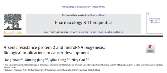 近日,beat365药学院基础药理教育部重点实验室高宁教授课题组2020级药理学硕士研究生袁亮作为第一作者,在国际知名期刊《Pharmacology & Therapeutics》(影响因子为13.4,中科院1区)上在线发表了题为“Arsenic resistance protein 2 and microRNA biogenesis: Biological implications in cancer development”的综述文章。高宁教授和龚其海教授为文章的共同通讯作者。该研究获得国家自然基金、贵州省研究生科研基金等项目的资助。