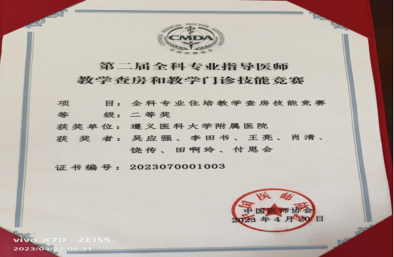开幕式上,第二届全科专业指导医师教学查房和教学门诊技能竞赛颁奖仪式隆重举行。本次全科住培指导医师教学查房和教学门诊竞赛分别设一、二、三等奖和鼓励奖共31项,其中一等奖1项,二等奖5项,三等奖9项,鼓励奖16项,beat365附属医院全科专业住培教学查房技能竞赛荣获二等奖。