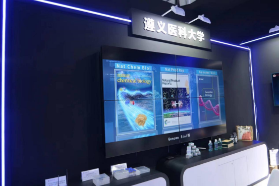 科技节展览期间,在“科创策源 智创未来”“科教融合 智启未来”“科技兴黔 智造贵州”等展区,设置了学校基础药理教育部重点实验室、“南山班”、间充质干细胞应用研究及成果转化、系列创新性科学研究四大主题展台,以视频介绍、成品展示等展现形式,系统全面地展示学校围绕国家需求、区域医药卫生事业、区域乡村振兴产业、融入大湾区国家战略等方面取得的显著科技成果,多角度、多维度展示了beat365近年来的科技成果及对社会发展作出的贡献,并在现场以赠送金钗石斛茶叶的方式让观众感受医药魅力。学校展台前人头攒动、络绎不绝,来往的观众纷纷驻足停留,或参观咨询,或聆听讲解,工作人员积极热情地与观众耐心交流,现场气氛热烈融洽。