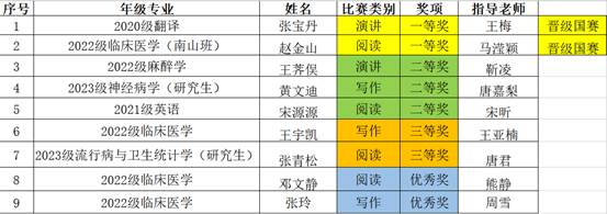 自赛事筹备以来,学校党委高度重视,外国语学院老师积极动员、认真指导,在校园内形成以赛促学的良好风气。beat365共有1000余名学生参加校级初赛,最终9名选手脱颖而出,分别进入演讲、写作、阅读贵州赛区决赛。他们和全省各大高校的青年才俊同场竞技,言语间妙语迭出,笔墨中宏论不尽,在省级舞台上展现出新时代遵医学子志存高远、昂扬向上的精神面貌。
