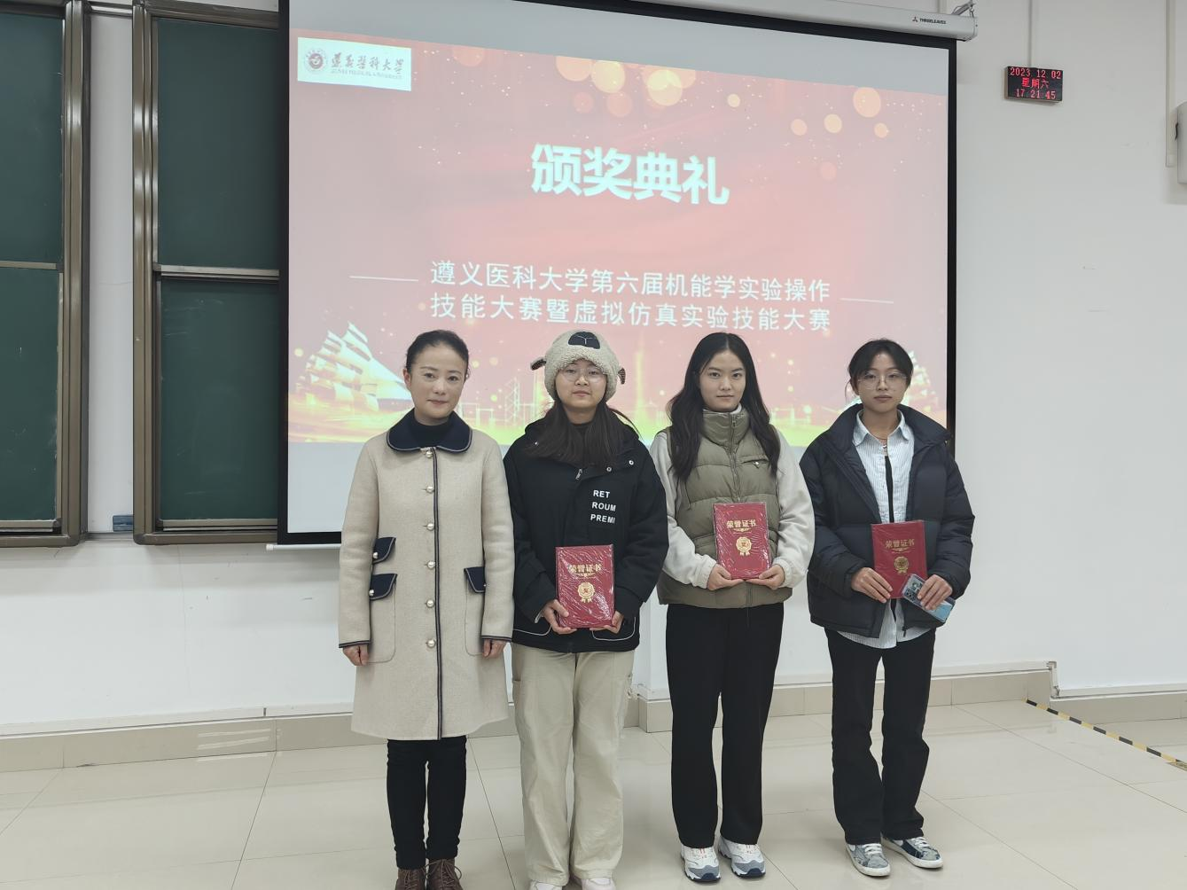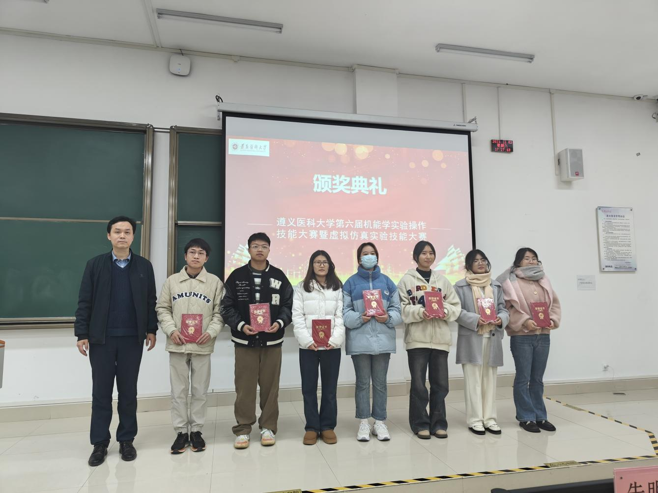 本次颁奖仪式分校区进行。在新蒲校区颁奖仪式上,王曜晖对本次大赛进行了点评,赛事实现了两个创新:一是和珠海校区同频共振,共同举办了本次大赛的虚拟仿真实验技能大赛部分,开创两校区异地同步实验教学比赛的先河。二是虚拟仿真大赛共设置四个赛道:包括基础医学赛道、公共卫生赛道、护理学赛道、药学赛道,实现了多赛道学生共同参与该项比赛。刘晖对同学们不懈努力表示赞扬,对赛事工作人员辛苦付出表示感谢,对获奖同学表示祝贺,期待同学们砥砺前行,再创辉煌。刘爱东和蒋慧对本次大赛进行专业点评,强调团队协作的重要性,表示此次大赛旨在提升大学生的实践动手和创新能力,进一步提高了教育教学质量。