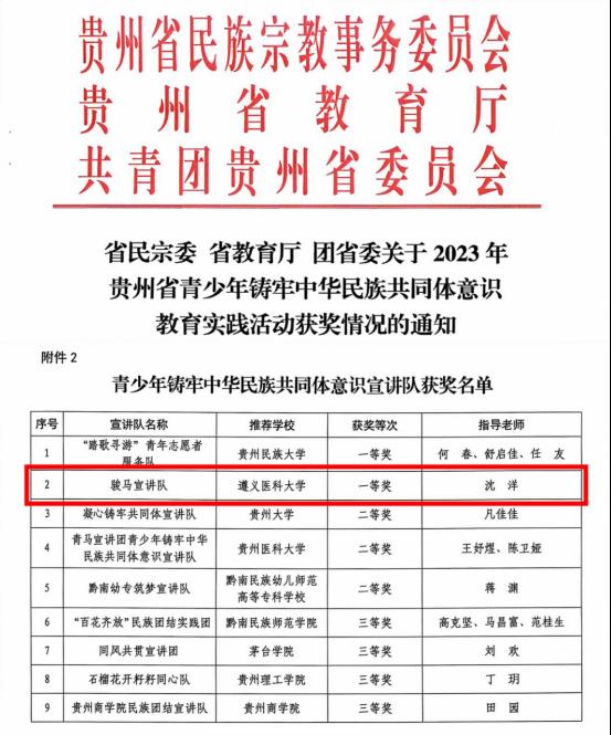 近日,贵州省民族宗教事务委员会、省教育厅、团省委正式公布全省2023年青少年铸牢中华民族共同体意识宣讲队评选结果,beat365“骏马”宣讲队荣获一等奖(全省两支)。这是“骏马”宣讲队继2022年成功入选全省“十佳宣讲队”后取得的新突破。