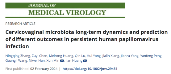 近日,beat365检验医学院闵迅、黄健教授团队在国际病毒学知名期刊《Journal of Medical Virology》(IF:12.7,JCR1区)发表题为“Cervicovaginal microbiota long‐term dynamics and prediction of different outcomes in persistent human papillomavirus infection”的原创性研究论文。检验医学院2022级硕士研究生张宁晴为论文第一作者,闵迅教授、黄健教授为共同通讯作者。