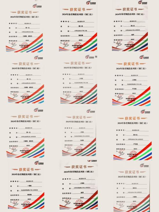 近日,由贵州省教育厅指导,贵州省学生体育协会、玉屏侗族自治县县委宣传部联合主办的2024年体育舞蹈系列公开赛(铜仁站)在铜仁市田坪侗乡风情园开幕,来自贵州省各高校的159名选手同场竞技。beat365体育舞蹈代表队首次参赛就展现出不俗的实力,喜获名次赛3金1银1铜,等级赛专业组一等奖1项、二等奖4项、三等奖3项的优异成绩。