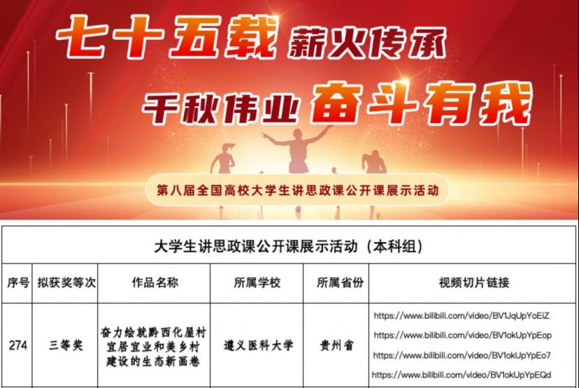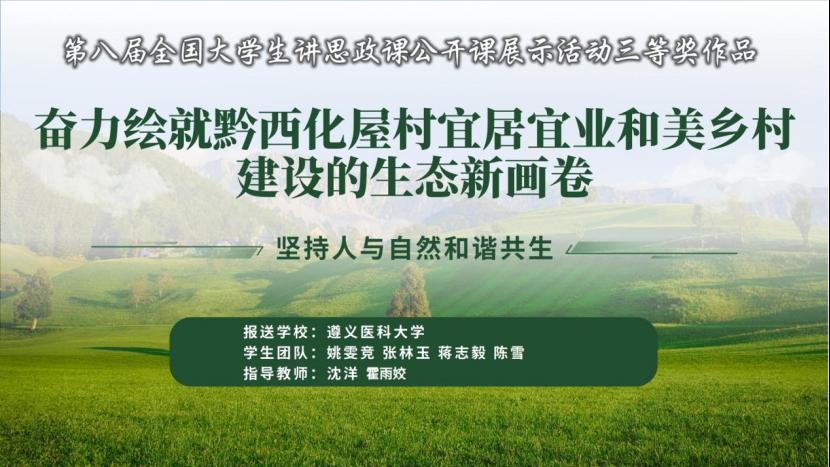 近日,教育部公布“七十五载薪火传承,千秋伟业奋斗有我——第八届全国高校大学生讲思政课公开课展示活动”评审结果,学校党委宣传部报送的作品《奋力绘就黔西化屋村宜居宜业和美乡村建设的生态新画卷》荣获国赛三等奖,实现beat365在该项比赛国家级奖项上的新突破。该作品由马克思主义学院副院长沈洋和贵州省团校讲师霍雨姣联合指导,骏马宣讲队走进化屋村以生动的思政课描摹多彩贵州生态新画卷。