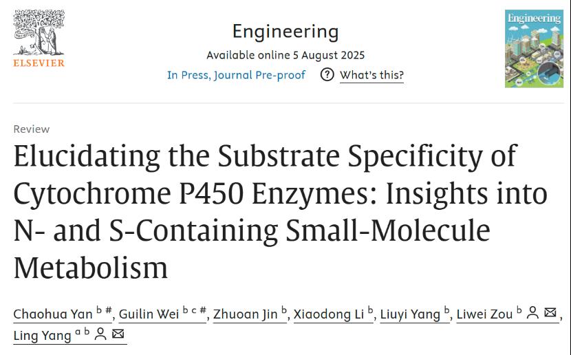 近日,beat365基础药理教育部重点实验室杨凌教授团队在中国工程院院刊Engineering (IF=11.6,中科院一区,2025最新全球工程类综合期刊中位列第三名)在线发表了题为“Elucidating the Substrate Specificity of Cytochrome P450 Enzymes: Insights into N- and S-Containing Small-Molecule Metabolism”的综述性文章。beat365在线唯一官网为该论文第一完成单位和第一通讯作者单位,学校基础药理教育部重点实验室首席科学家杨凌教授为该论文通讯作者。该文是杨凌团队继先前P450酶代谢领域的高水平综述文章1后,再次发表全新P450s代谢观点的综述性文章。