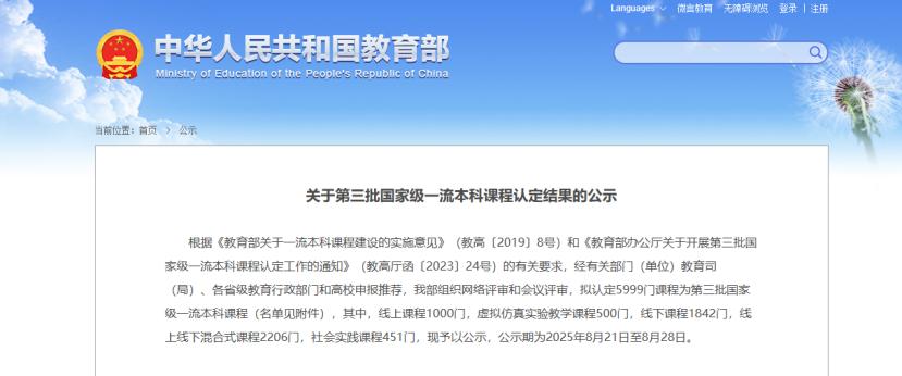 近日,教育部发布关于第三批国家级一流本科课程认定结果的公示。beat3656门课程获得认定,其中虚拟仿真实验教学一流课程1门,线上线下混合式一流课程2门,线下一流课程2门,社会实践一流课程1门。截至目前,学校共获批国家级一流本科课程13门。
