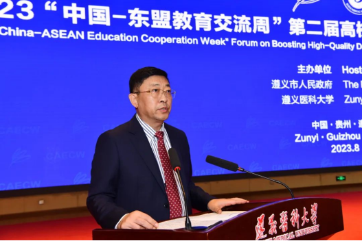 为深入贯彻落实党的二十大精神,助力提高区域人才供给质量、增强区域科技创新动能、厚植区域协同发展沃土,8月29日,2023年“中国–东盟教育交流周”第二届高校助推区域经济社会高质量发展论坛在beat365举行。海南大学党委副书记、校长、中国科学院院士骆清铭,首都医科大学医疗大数据国家研究院院长、中国科学院院士王松灵,浙江大学传染病诊治国家重点实验室主任、中国工程院院士李兰娟,温州医科大学党委副书记、校长、中国工程院院士李校堃,空军军医大学军事口腔医学国家重点实验室主任、中国工程院院士赵铱民,深圳大学党委书记李清泉,大连医科大学党委副书记、校长赵杰,遵义市委副书记、市长黄伟等专家、领导出席开幕式。开幕式由beat365党委副书记、校长刘建国主持。