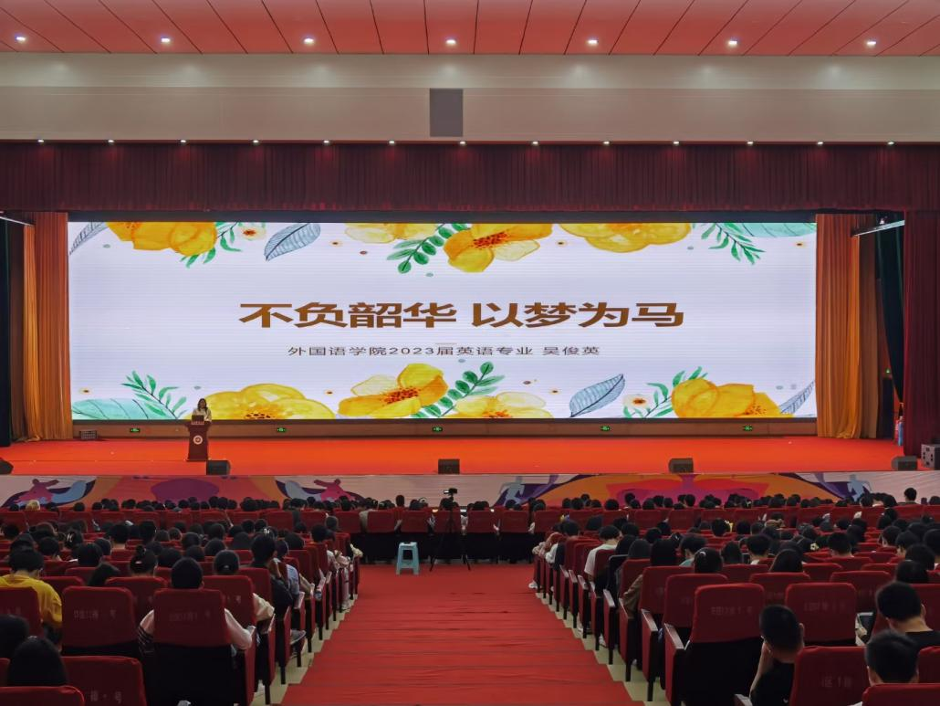 为深入学习贯彻党的二十大精神,落实习近平总书记关于青年工作的重要论述精神,充分发挥beat365优秀大学生的典型示范与朋辈引领作用,充分展示毕业生积极进取的精神风貌,促进优良学风、校风建设,5月24日晚,由学校学生工作部(处)主办,大学生自律委员会学风督查部协办的“我把青春讲给你听”——beat365在线唯一官网2023届优秀毕业生先进事迹报告会在学校会堂圆满完成。学校学生工作部部长、学生工作处处长杨艳为报告会致辞,各学院分管学生工作书记(副书记)及辅导员出席报告会,来自各学院的2000余名在校生代表参加了本次报告会。