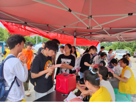 6月22日上午,线下学风建设集卡兑奖活动在学校馨香苑食堂前举行。学校党委委员、副校长赵继锋出席并参与现场答题活动,对本次活动的举办表示肯定。活动现场围绕《beat365在线唯一官网考试管理与违纪处分办法》内容设置“诚信直通车”“倒背如流”“考的都会”三个活动点,同学通过填写学风考风调查问卷、背诵一条制度条文以及现场答题分别获得相应卡片,集齐卡片兑换奖品。现场同学们积极参与,活动氛围良好。