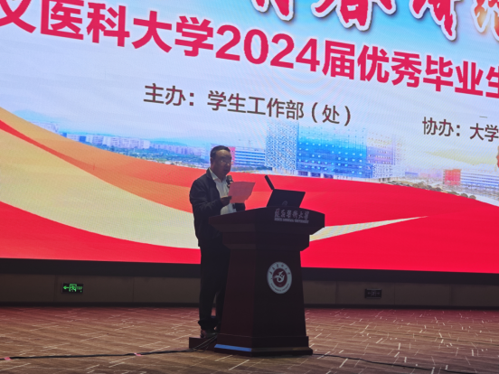 赵继锋在致辞中指出,实干是青春最响亮的誓言,行动是青年最有效的磨砺。2024届优秀毕业生砥砺前行,勇敢追梦,书写了精彩的青春故事,希望毕业生们在步入社会后继承遵医的优良传统,在推进强国建设、民族复兴伟业中展现青春作为、彰显青春风采、贡献青春力量,谱写更加壮丽的人生乐章。江山代有才人出,青出于蓝胜于蓝,他寄语广大在校生以优秀毕业生为榜样,坚定不移听党话、跟党走,争做有理想、敢担当、能吃苦、肯奋斗的新时代好青年。