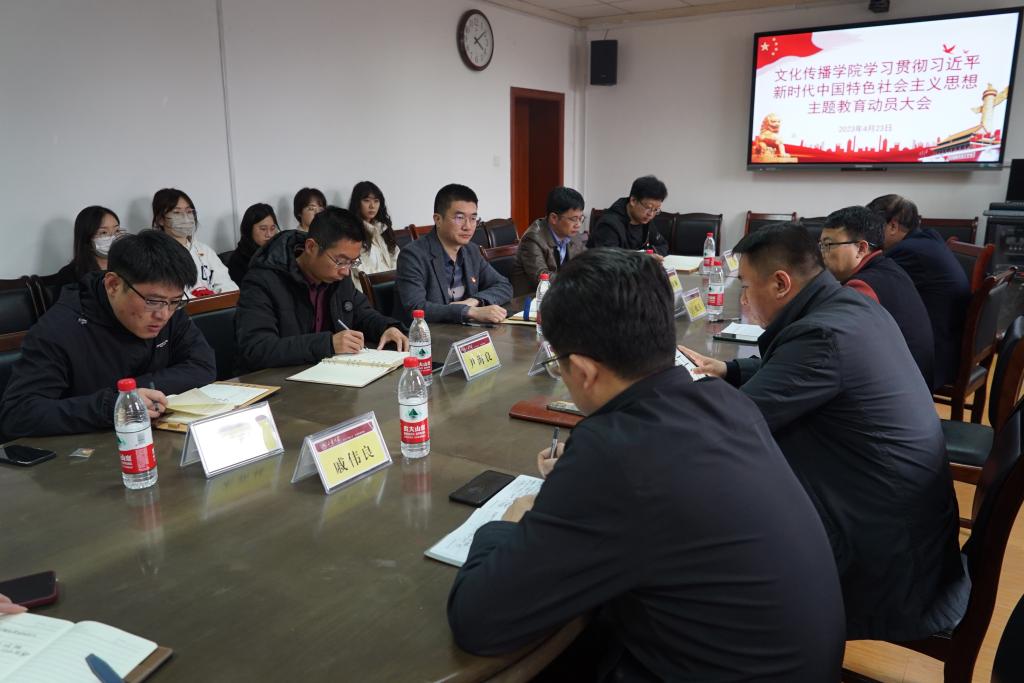 4月23日下午,beat365在线唯一官网登录召开学习贯彻习近平新时代中国特色社会主义思想主题教育动员会。学校党委第九巡回指导组副组长吕兆生、成员戚伟良出席会议,学院党委书记魏斌主持会议并做动员讲话。