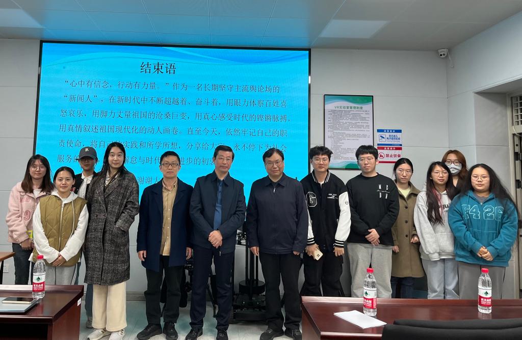 杨杰教授结合自身三十年党报实践经验和采访实战案例,阐述了关于认真学习贯彻习近平总书记关于新闻舆论工作的重要论述及党报新闻实践与范式转型的场域特征和丰富内涵。他首先介绍了围绕“焦裕禄逝世三十周年纪念活动”策划并实施的“沿着焦裕禄的足迹”系列报道,分享了党报新闻记者的责任与使命、党报“好记者”的标准、党报“好新闻”价值取向和提升党报记者综合素质四方面的理论知识。杨杰教授以丰富的新闻实践阐述了党报记者不仅要具有高超的采写能力与驾驭语言能力,还要拥有深厚理论功底,能深入田野现场。而理想、信念、情怀、汗水是记者成功的必要条件与核心密码,重塑信念是塑造主流舆论场生态的关键。杨杰教授强调,新时代新闻记者要加快新闻传播实践创新,提升自身研究能力,锤炼自身综合素养,审视时代,定位角色,范式突围,实现全方位复合型的转变,凝心聚力,营造良好的舆论生态环境。