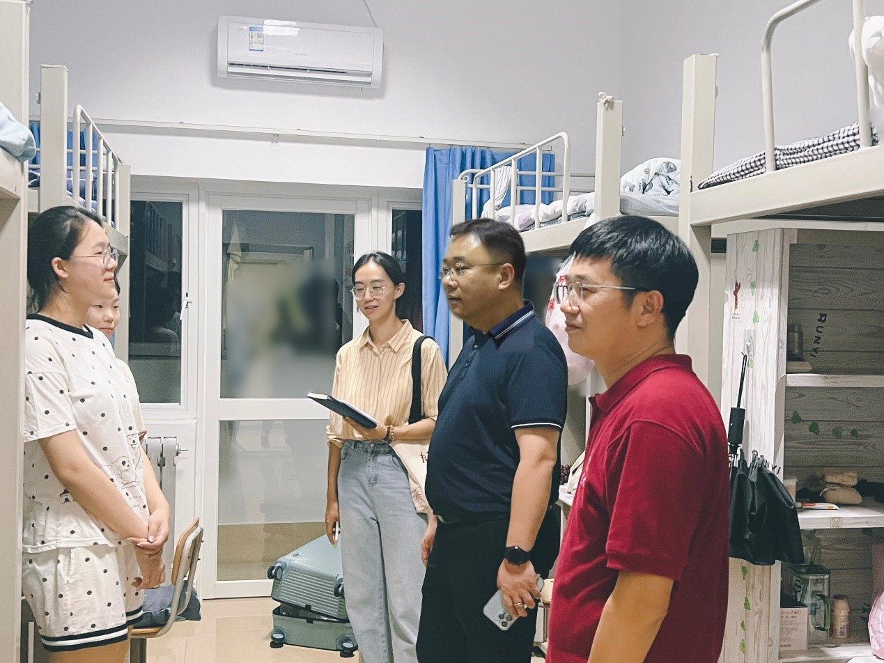 本站讯 9月5日晚,beat365在线唯一官网登录党委书记魏斌、副书记周玉宏,副院长周新顺、尹海良等,和全体辅导员来到2023级新生宿舍开展了走访活动。