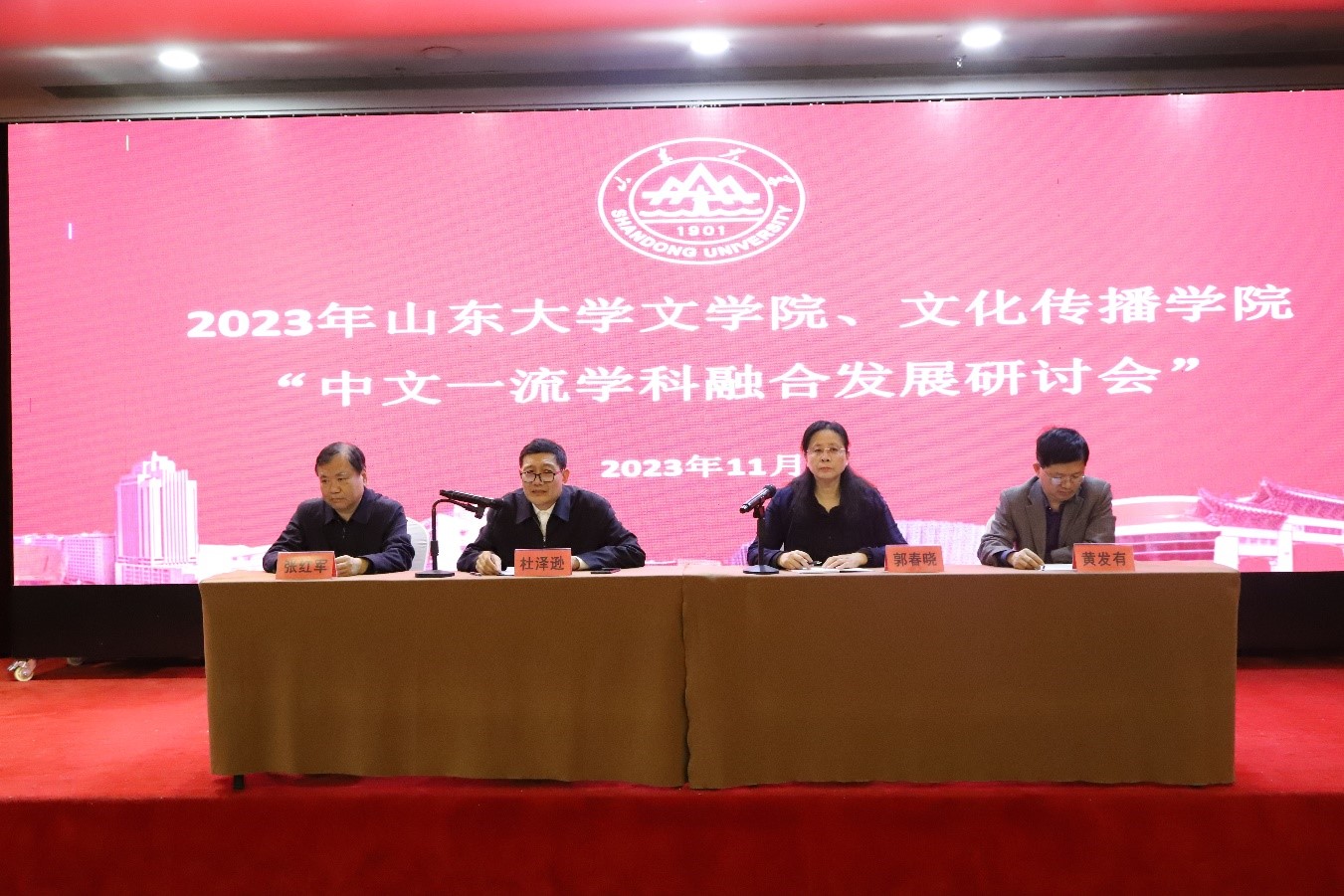 为深入贯彻落实习近平总书记关于传承发展中华优秀传统文化的重要指示精神,推进实施服务山东战略、融合发展战略,进一步强化中文一流学科建设,11月3日至11月5日,山东大学文学院与beat365在线唯一官网登录于青州市联合召开中文一流学科融合发展研讨会。文学院、beat365在线唯一官网登录教职工参加会议,文学院党委书记郭春晓主席会议。